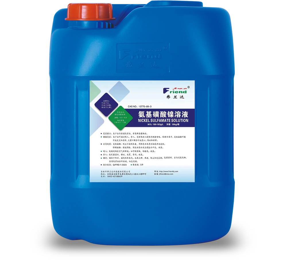 吉林市弗蘭達科技股份有限公司成立于2004年,位于吉林省吉林市龍?zhí)督?jīng)濟開發(fā)區(qū)精細化工園漢江路99號,注冊資本1000萬元,占地2萬平方米。專業(yè)從事醋酸鎳、氨基磺酸鎳、堿式碳酸鎳、氨基磺酸鈷等系列產(chǎn)品的研發(fā)與生產(chǎn)。產(chǎn)品均通過歐盟Reach和Rohs認證,生產(chǎn)制造過程通過了ISO9001質(zhì)量管理和ISO14001環(huán)境管理體系認證,擁有自主進出口經(jīng)營權(quán)。本著追求卓越、回報社會的企業(yè)宗旨,本著誠信擔當、品質(zhì)卓越、激情創(chuàng)新、和諧共贏的核心價值觀,為客戶提供優(yōu)質(zhì)服務(wù),做行業(yè)知名品牌。產(chǎn)品主要應(yīng)用領(lǐng)域:鋁合金陽極氧化、著色、封閉劑行業(yè);精密電鍍、電子電鍍行業(yè);石油化工、機械行業(yè)的催化劑制造、電鍍主鹽等。